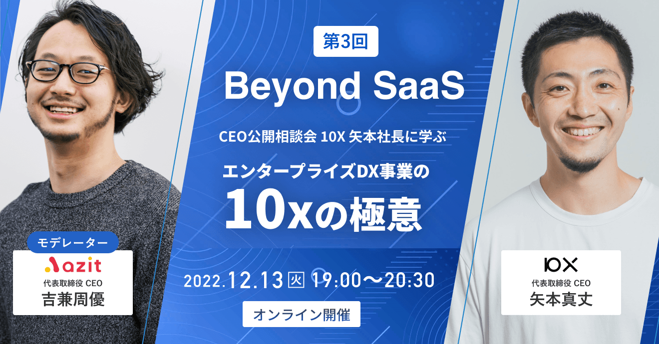 今回は小売チェーン向けのECプラットフォームを運営する株式会社10Xの代表取締役CEOの矢本さんをゲストに迎え、“エンタープライズDX事業”の極意について紹介。